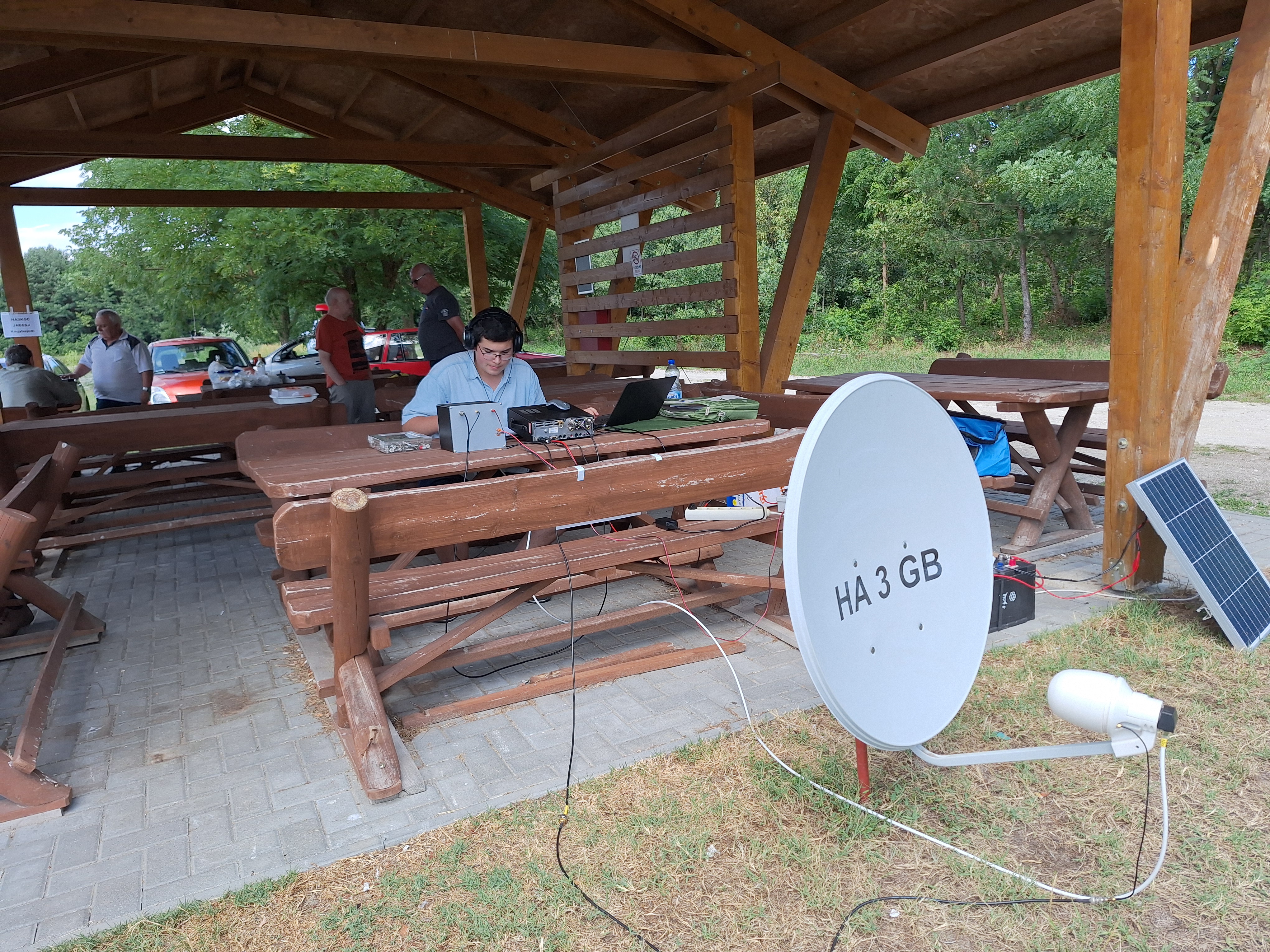 Kellemes nyári napot sikerült kifognunk, a filagória komoly védelmet biztosított az erős napsugárzással szemben. Több RH készüléket (Recent RS-918 és Xiegu G90) és RH antennákat (3 sávos GP, 20m végén táplált antenna) hoztak klubtársak, de ezen a kitelepülésen is a fókuszban a QO-100-as műholdon történő forgalmazás volt. RH-n 7MHz-en és 14MHz-en dolgoztunk. A QO-100-on idén csak SSB üzemmódban forgalmaztunk. Összesen 32 QSO-t sikerült összehoznunk. 9A, DL, EA, EM, F, G, GW, HA, HB9, LZ, ON, R, SP, UT országokkal forgalmaztunk. Nagyszerű rádiózás volt.