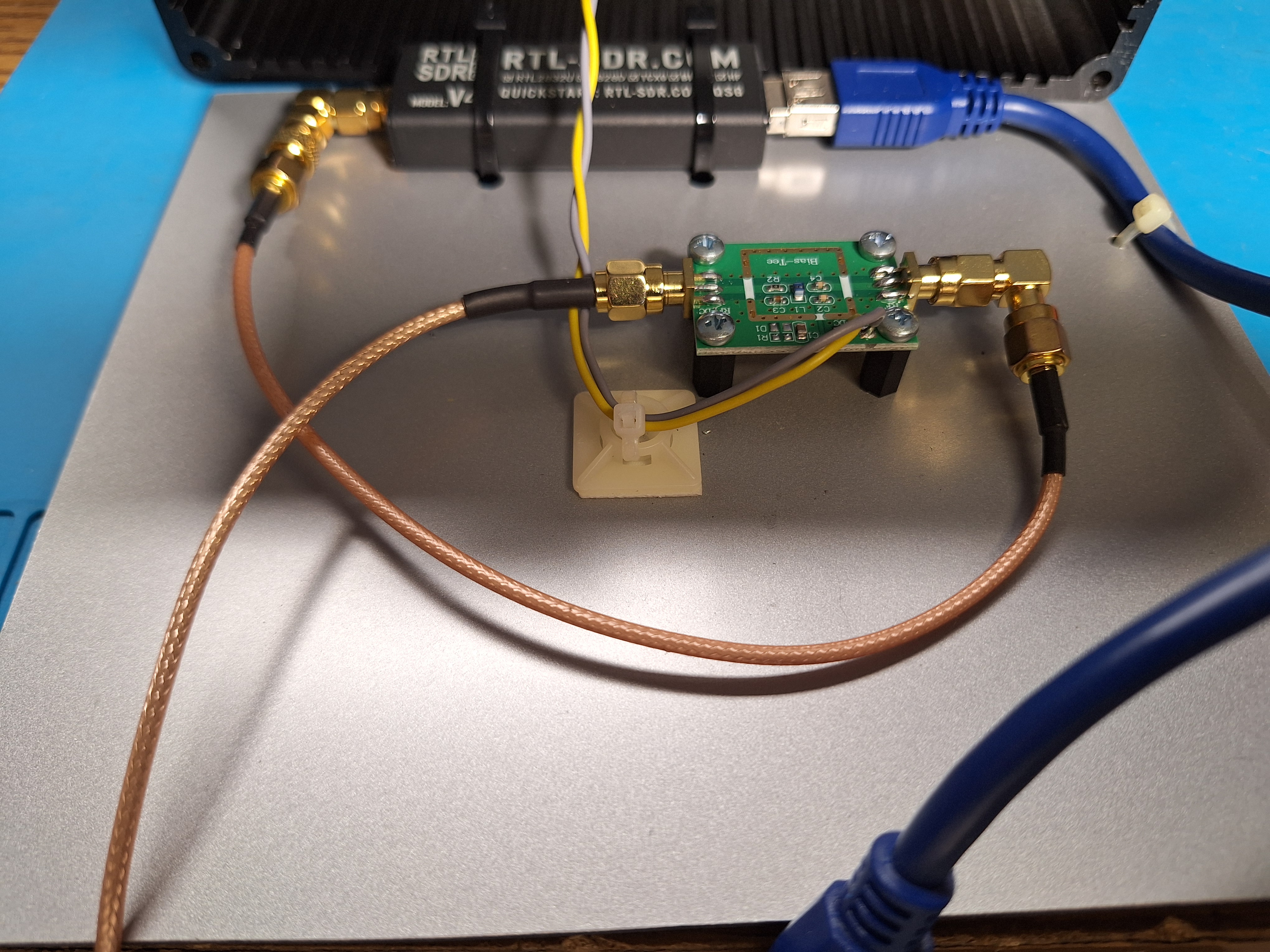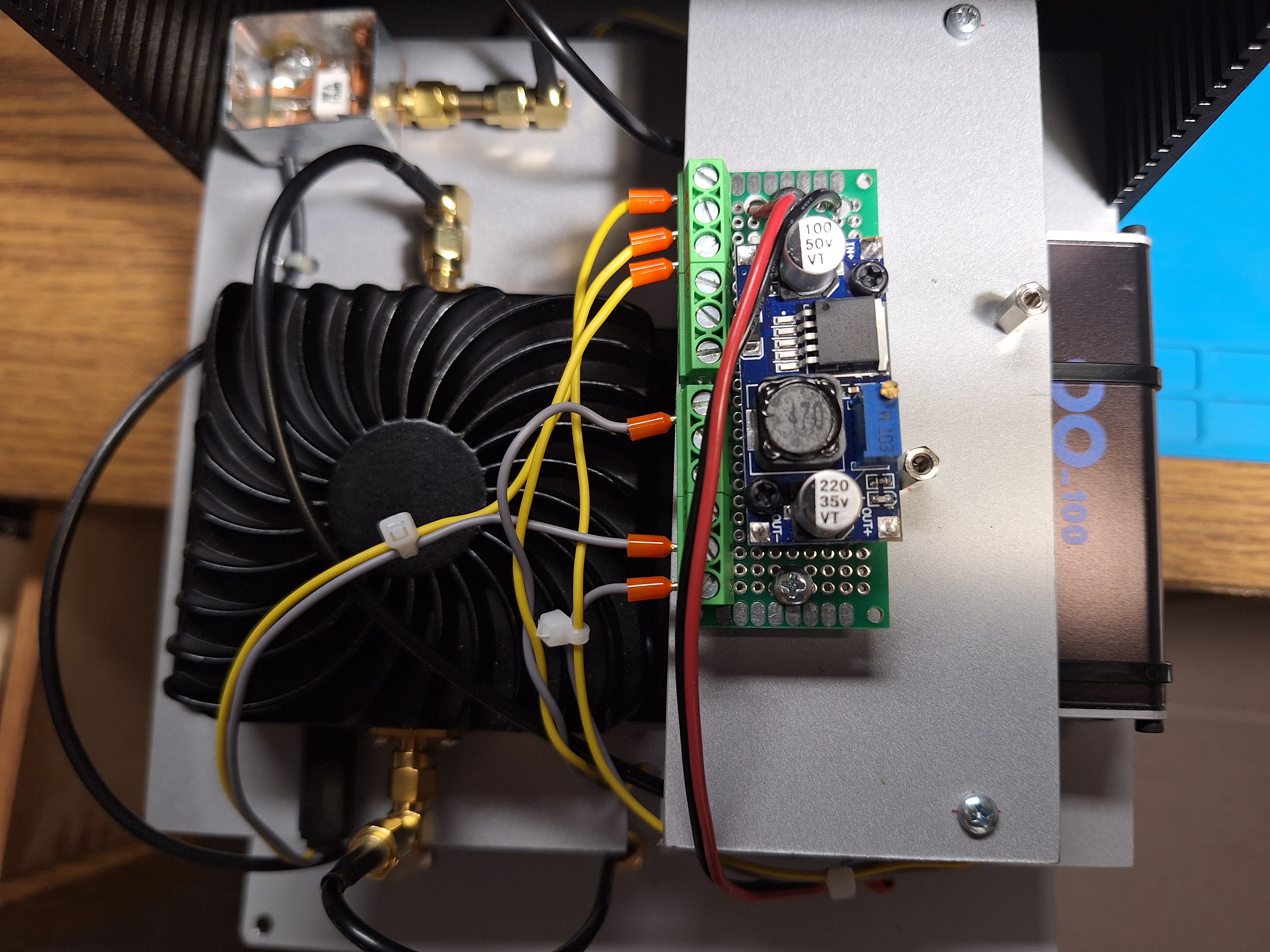Műholdas rendszerben egy FT847 volt az alapkészülék, ami 144MHz-en hajtotta az up-convertert. Felépítése: osztó, DX-patrol gyártmányú MK4 konverter modul és 3W teljesítményű, 2,4GHz-es, WIFI erősítő. Az adó és vevő egység egy közös műszerdobozba került. Az adásra 2,5menetes helical-antennát használtunk, vételre a helicallal közösködő Bullseye LNB szolgált (Othernet Bullseye LNB TCXO ultra stable for Oscar 100 & KU band satellite). Az antennákat egy 80 cm átmérőjű offset parabola tükörre szereltük. Az LNB egy RTL SDR BLOG V4 változatú USB SDR vevőhöz csatlakozott. A hozzá kapcsolt laptopon pedig a jól ismert SDR-Console program futott.