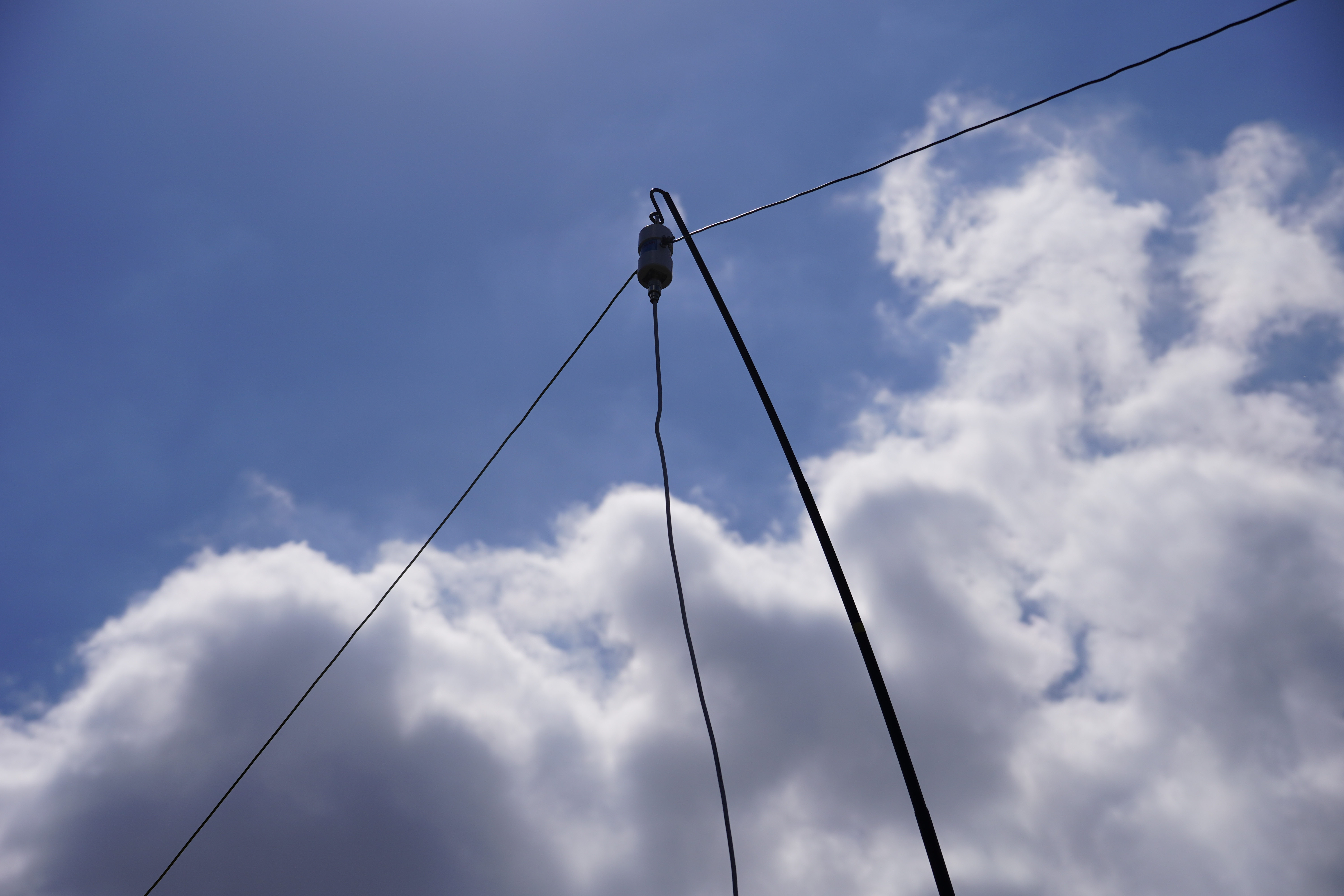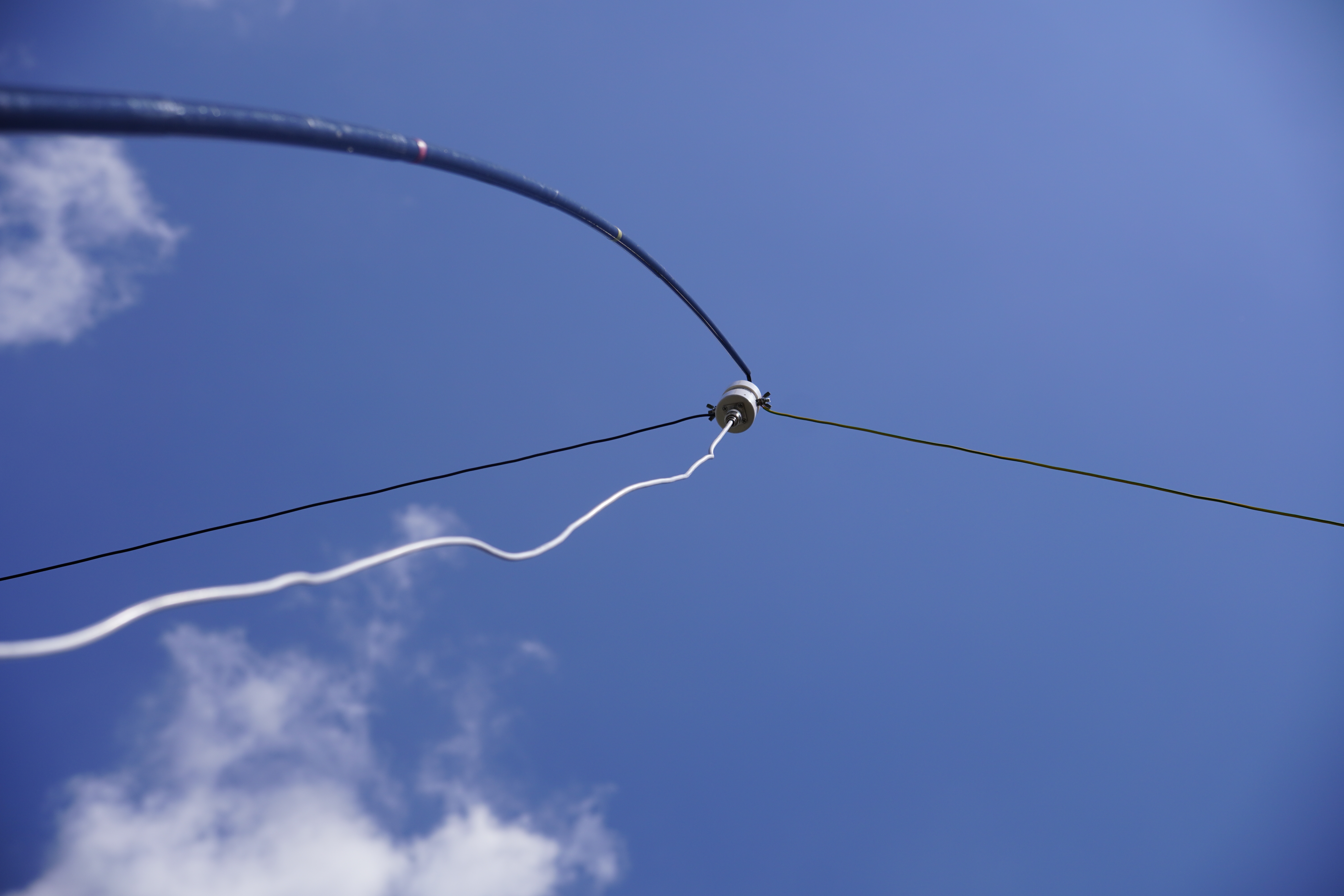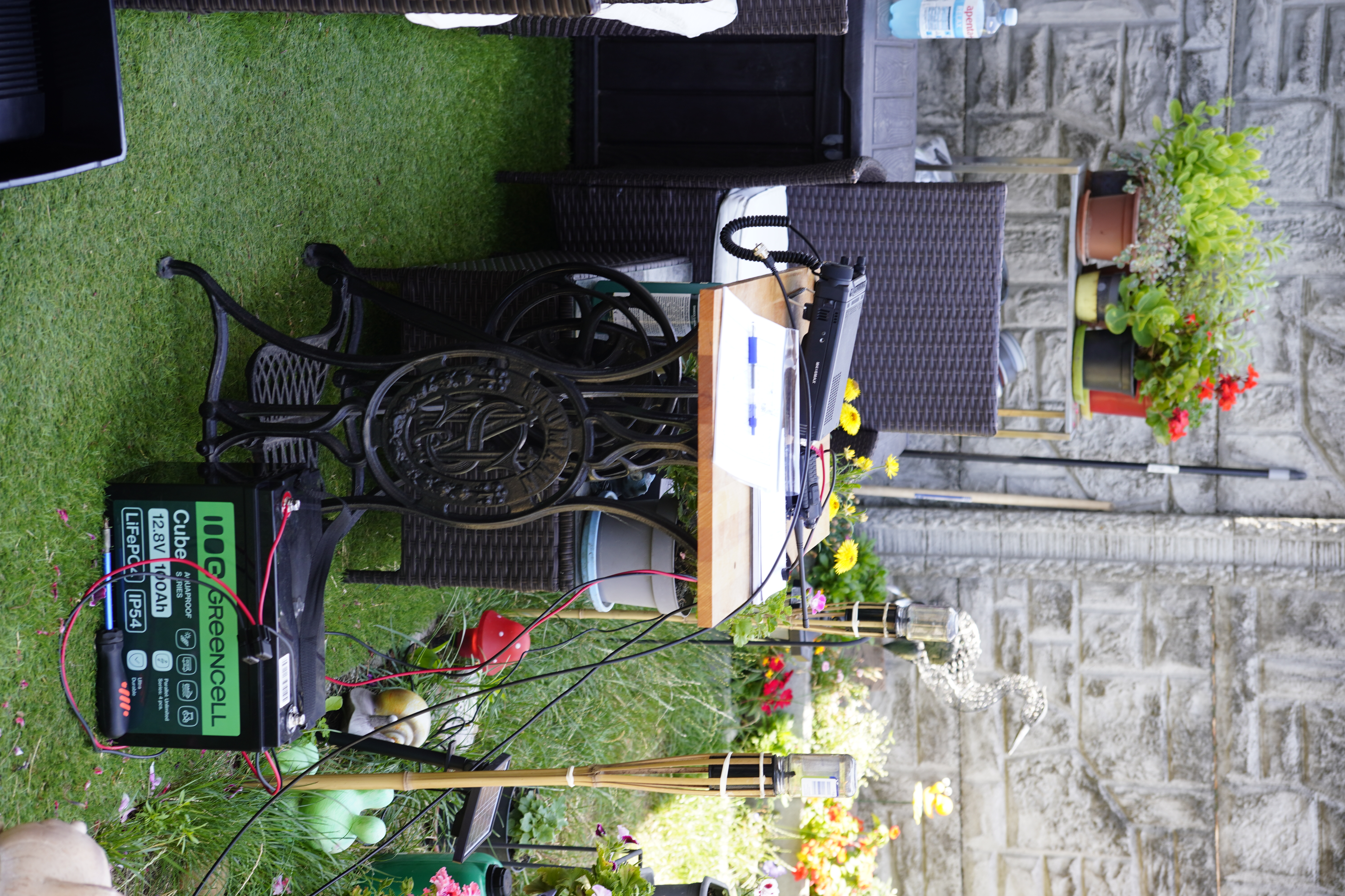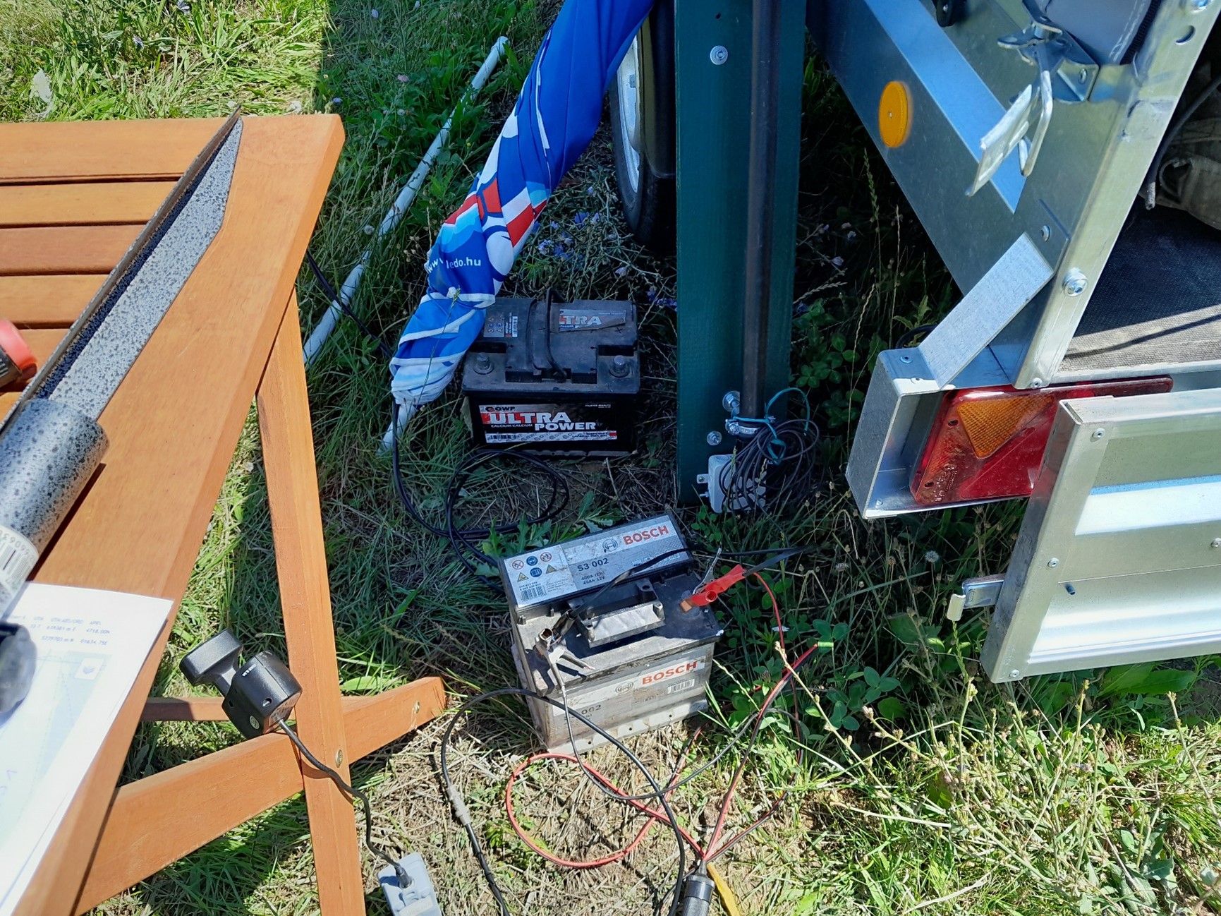 A kitelepülőnap reggelén egy horgászbot segítségével telepítettük az inverted V-dipól antennát a kertünk megfelelő pontjára és beállítottuk a Yaesu FT-891-et. A kiírásnak megfelelően egy LiFePO4 akkumulátort használtunk, amely elegendő energiát biztosított a rövidhullámú rádió 100W-os kimenő teljesítményéhez.