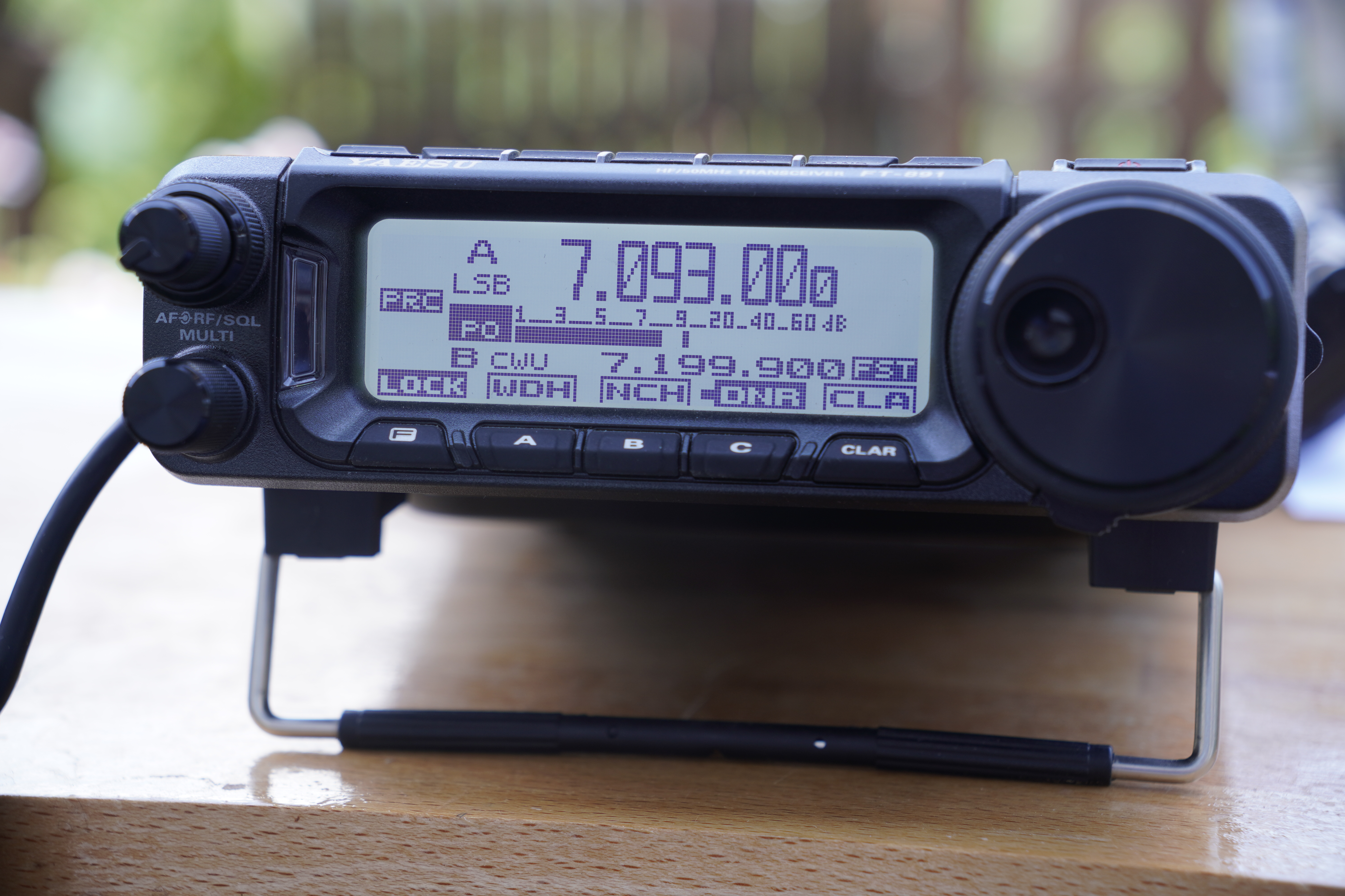 Az FT-70DE kézi rádióval és a DX-CR-627 URH antennával a déli órákban folytattuk a forgalmazást, 5W kimenő teljesítménnyel kiválóan elértük a környékbeli VHF és UHF átjátszókat.